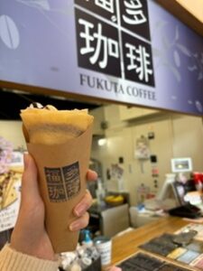 「クレープ」を食べました。味はチョコバナナホイップです。生地がもちもちでバナナとホイップ
